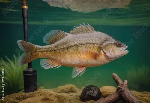 Fototapeta premium A lovely statue depicting a fish is resting on a wooden block