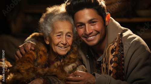 Fototapeta premium A loving grandmother and her grandson sharing a heartfelt embrace