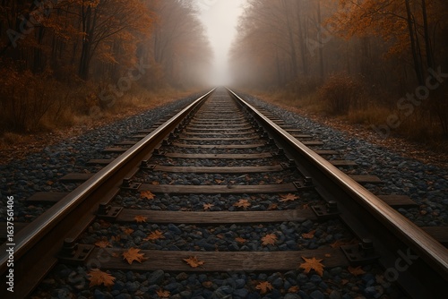 Naklejka premium A low-angle, shallow-focus shot of train tracks stretching into the distance...