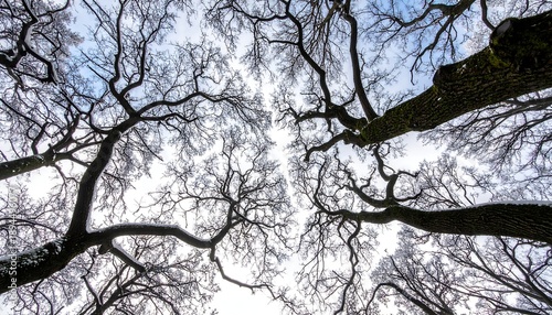 © Irwini, Fototapeta premium A low-angle shot of tree branches against a cloudy sky