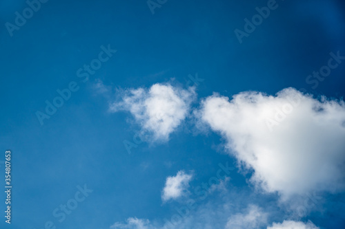 © Matthias, Fototapeta premium A low angle view of a blue cloudy sky at daytime - perfect for wallpapers and backgrounds