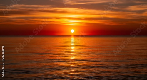 © SpectraFocus, Naklejka premium A Low-Angle View of a Fiery Sunset Over the Ocean