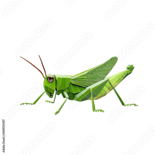 Fototapeta premium A low polygon style grasshopper, isolate on white background, showcasing geometric shapes and modern design. PNG