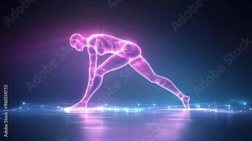 Fototapeta premium A luminous, digital depiction of a runner in a starting position, showcasing futuristic movement and energy.
