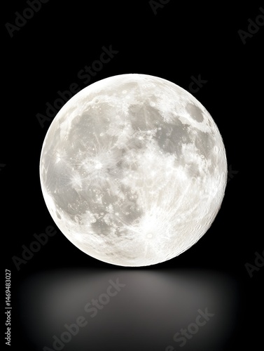 Obraz premium A luminous full moon, brightly lit, casts a subtle reflection on a dark surface