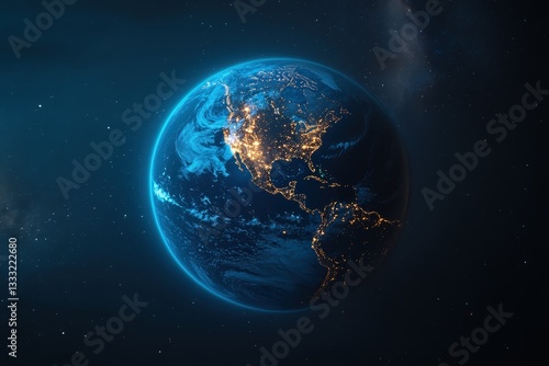 © MrHamster, Obraz premium A luminous planet earth viewed from the vast outer space