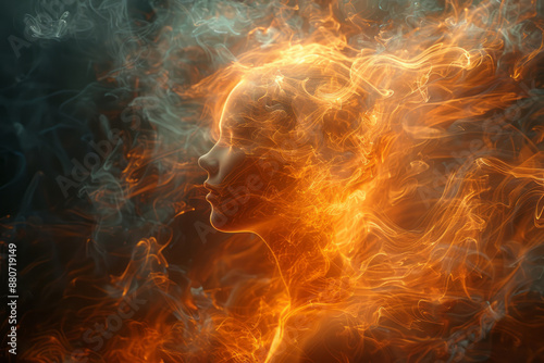 © Natalia, Obraz premium A luminous shape ascending from a still form, symbolizing the soul’s departure in an abstract setting,