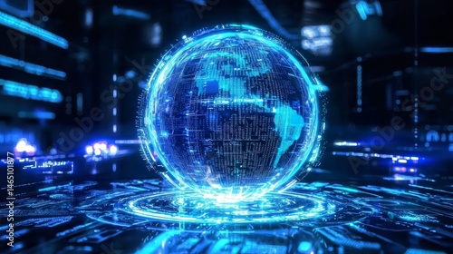 © Zembeco, Obraz premium A luminous sphere illuminated by digital code