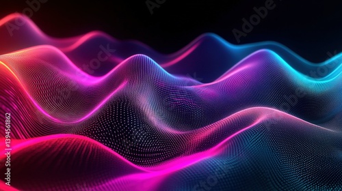 © Nazar, Obraz premium A luminous wave-like pattern with sharp curves and gradients shifting from bright magenta to pale cyan over a black backdrop.