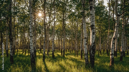 © Cyber Shutter, Fototapeta premium A lush birch woodland during the summer season