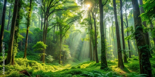 Naklejka premium A lush forest with tall trees and abundant greenery providing fresh oxygen and improving air quality, green lungs, nature