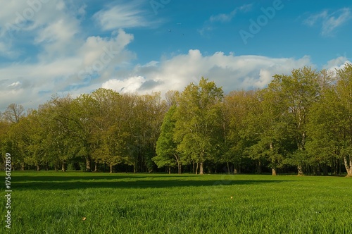 © ArtificialHorizons, Fototapeta premium A lush grassy area within a recreational space