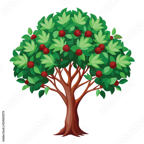 Fototapeta premium A lush green bush with red fruits, showcasing vibrant leaves and a healthy...