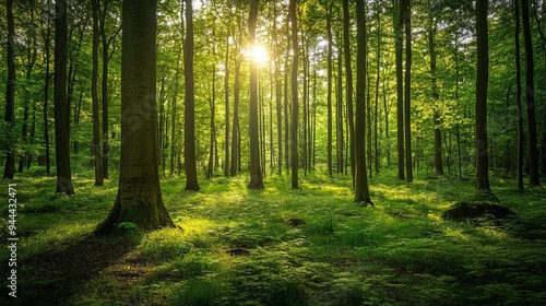 © Galina, Obraz premium A lush green forest filled with lots of trees