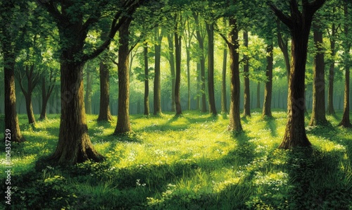 © Александр Михайлюк, Fototapeta premium A lush green forest with many trees