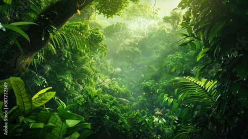 © Moon Story, Fototapeta premium A lush green jungle with trees and plants