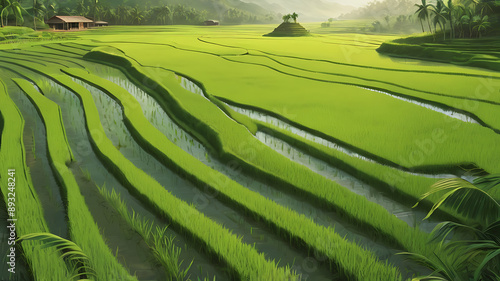 Fototapeta premium A lush rice paddy field, representing agriculture and the lifeline of rural...