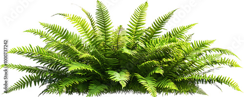 Naklejka premium A lush tropical fern bush with dense green fronds, isolated on a white background