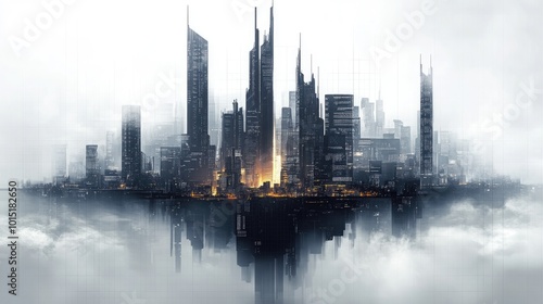 © Official, Fototapeta premium A luxurious AI-generated image featuring a futuristic city skyline, designed with intricate details and expensive visual effects. Isolated on a transparent background.