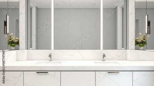 Obraz premium A luxurious bathroom vanity made of white marble with a sleek design and...
