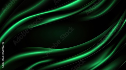 © Junior, Obraz premium A luxurious 3D render of deep emerald green silk drapery, folded intricately to create an abstract background with flowing waves and smooth textures.