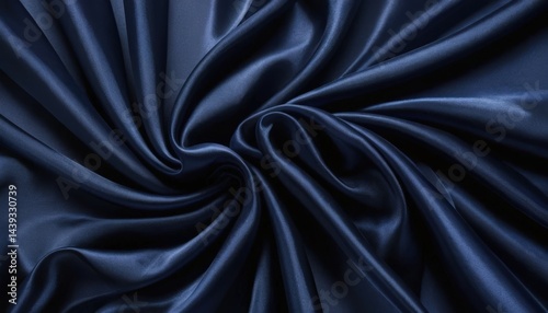 Obraz premium A luxurious dark blue silk fabric drapes elegantly, showcasing its smooth texture and rich color, reflecting light with a subtle sheen.