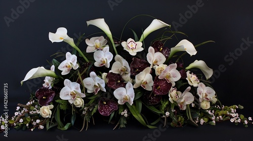 Obraz premium A luxurious floral arrangement with orchids and calla lilies isolated for a studio like effect