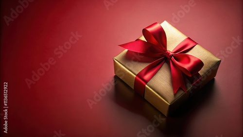 © Collection, Obraz premium A Luxurious Gold Gift Box with a Crimson Ribbon Bow on a Deep Red Background