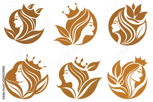 Fototapeta premium a luxurious golden beauty logo featuring a woman line art