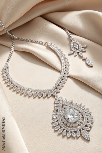 Fototapeta premium A Luxurious Jewelry Set Lies Elegantly on a Soft Fabric Surface