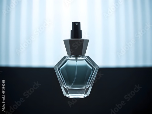Obraz premium A luxurious perfume bottle with a geometric shape and transparent liquid on a...
