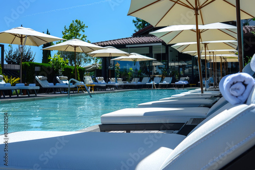 Fototapeta premium a luxurious pool and hotel interior for a summer holiday or in warm...