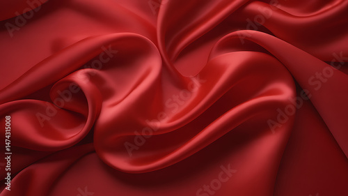 Obraz premium A luxurious red satin fabric with a smooth, shiny texture and elegant curves...