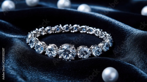 Fototapeta premium A luxury diamond bracelet displayed on a smooth black velvet background