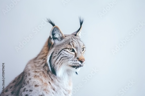 Obraz premium A lynx is seen against a white backdrop, its wild nature and pointy ears...