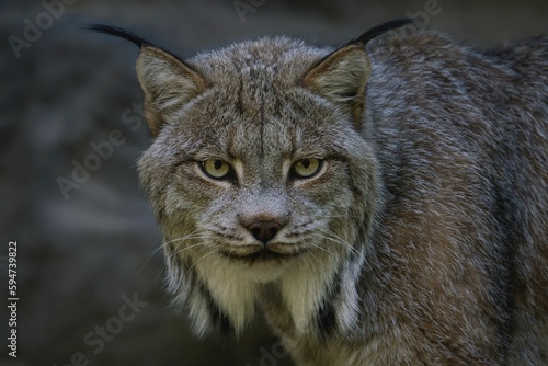 Fototapeta premium a lynx looking at something and staring ahead with an evil expression