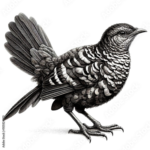 © Bas SketchEngraving, Obraz premium a lyrebird sketch engraving. White background.