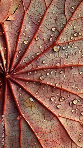 Fototapeta premium A macro capture of a lotus leaf with tiny dew drops forming natural patterns,...