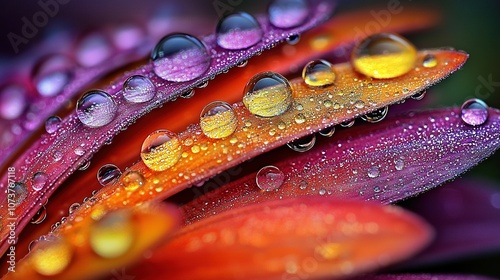 Fototapeta premium A macro shot of a bloom adorned with dewdrops, featuring an orange and purple...