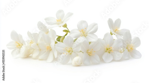 Obraz premium A macro shot of a cluster of white jasmine flowers, isolated white...