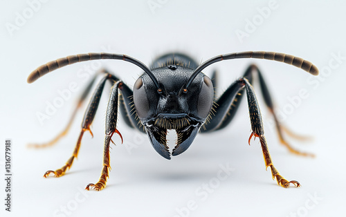 Fototapeta premium A macro shot of an ant on a white background, highlighting its details, ideal...