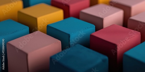 © WD Stock Photos, Obraz premium A macro shot of vibrant multicoloured 3D blocks stacked unevenly