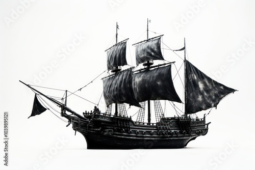 Fototapeta premium A magical black pirate ship watercraft sailboat vehicle.