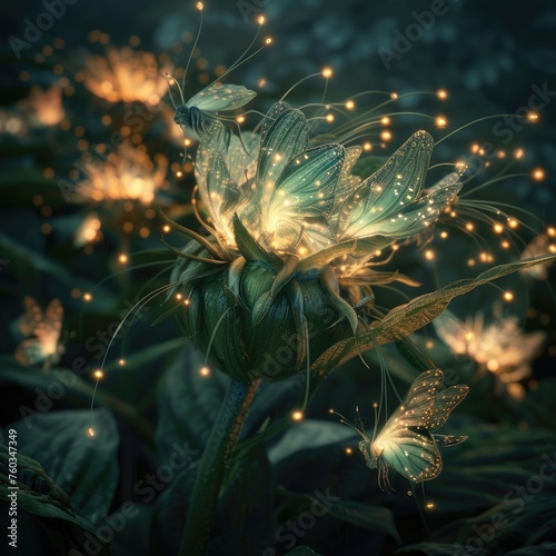 Obraz premium A magical bud that opens to release a swarm of luminescent fairies