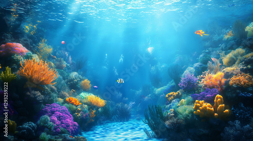 Fototapeta premium A magical coral reef with vibrant sea creatures and hidden treasures
