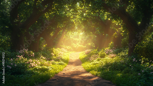Naklejka premium A magical fantasy forest background, perfect for fantasy-themed events and nature-inspired designs.