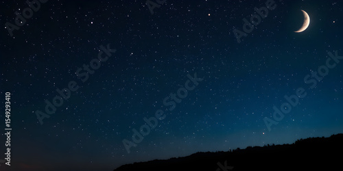 © Qrryferry, Naklejka premium A magical night sky with glowing stars and a crescent moon, ample copy space