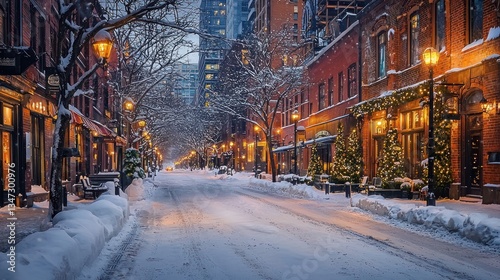 Fototapeta premium A Magical Snowy Street in Winter Wonderland