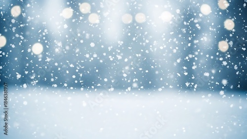 Fototapeta premium A magical winter wonderland with falling snow and sparkling bokeh lights on a...