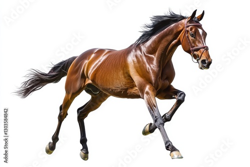 © SAM''s GALLREY, Obraz premium A magnificent horse gallops energetically in a bright studio setting, showcasing its powerful form isolated on transparent background